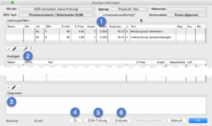 - GOÄ-Prüfung = bereits in der Leistungskette erfasste GOÄ-Ziffern können hier daraufhin überprüft werden, ob die gemeinsame Abrechnung GOÄ-konform ist.
