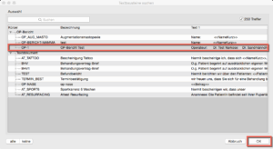 Im Auswahldialog für Textvorlagen markieren Sie die gewünschte Vorlage – in diesem Beispiel „OP-1“ und klicken auf OK: