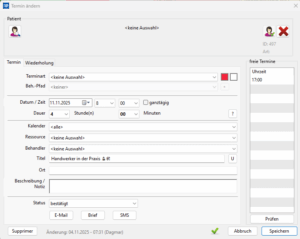 • In KALENDER bearbeiten einen BEHANDLER auswählen und verknüpfen