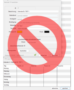 Die Öffnungszeiten in Kalender werden vom OTK nicht übernommen. Sie müssen den individuellen Zeitplan eines Behandlers in der OTK Administrationskonsole anlegen. Auch möglich als Ergänzung: der individuelle Zeitplan einer spezifischen Terminart für einen Behandler.