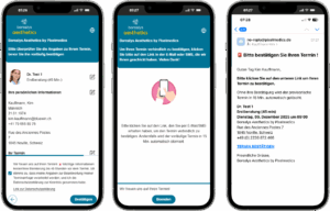 In der endgültigen Terminbestätigungs-E-Mail kann der Patient seinen Termin über einen Link ändern oder stornieren (siehe: „Termin bearbeiten“). Eine Terminänderung oder eine Terminstornierung löst wiederum eine Bestätigungs-E-Mail aus.