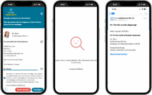 Die Double-Opt-In-Identitätskontrolle stellt sicher, dass nur tatsächlich berechtigte Personen einen Termin buchen können. Durch die zusätzliche Bestätigung via E-Mail oder SMS wird verhindert, dass falsche oder fehlerhafte Angaben zu Terminbuchungen führen. Gleichzeitig erhöht dieses Verfahren die Sicherheit der persönlichen Daten und reduziert Missbrauch, Doppelbuchungen und Spam. So profitieren sowohl die Praxis als auch die Patienten von einer zuverlässigen und vertrauenswürdigen Terminverwaltung.