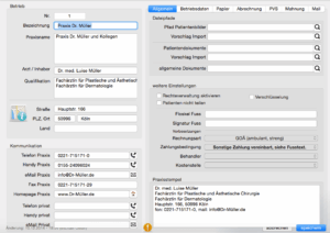 - Ordnen Sie einen Standardleistungserbringer zu (6). Die Pflege erfolgt unter System>Behandler.