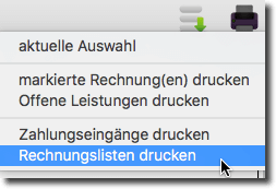 Beispiel für Rechnungen (Aufruf über Belege→Rechnungen, dann Klick auf das Druckersymbol):